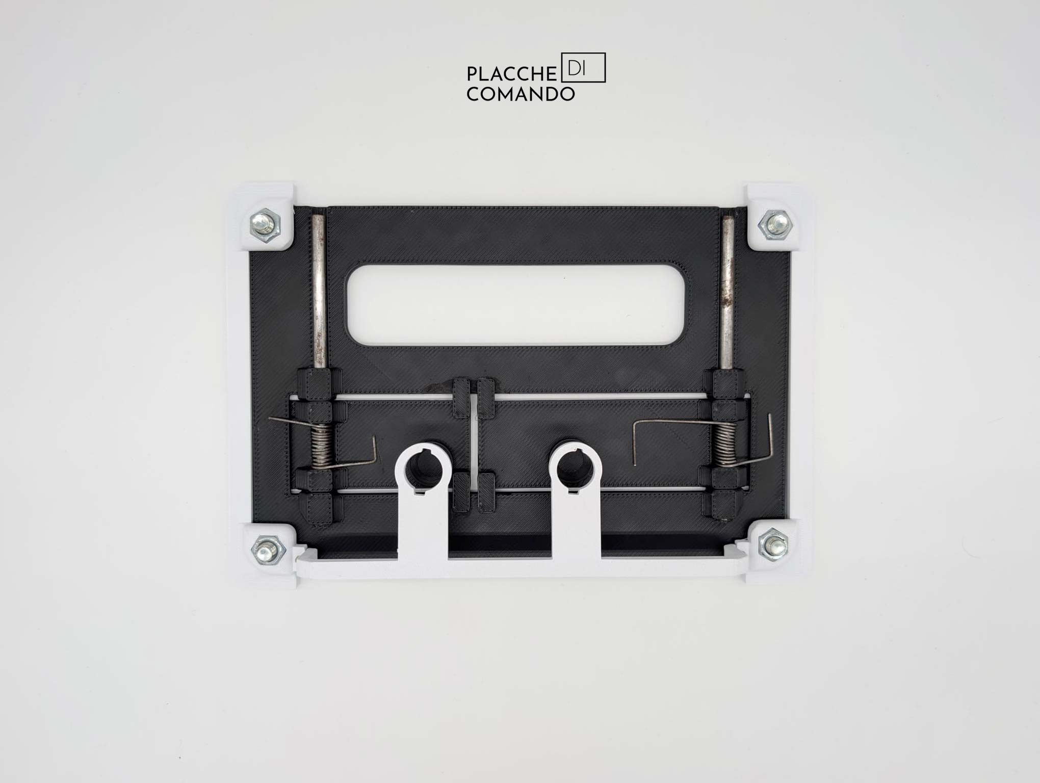 Placca di comando WC rivestibile compatibile con sistemi di scarico a doppio pulsante Geberit Sigma per consentire l'installazione a filo muro. Stampata 3D in materiale PLA ecologico. Personalizzabile con le piastrelle del tuo bagno per un effetto filo muro elegante e moderno.
